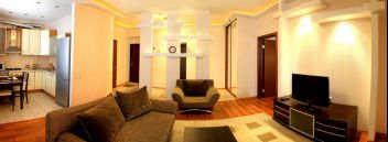 В квартире сделан качественный евроремонт, зал-кухня студия, большой LCD телевизор , DVD, сплит-система, встроенная итальянская кухня со всей бытовой техникой , двухконтурный газовый котел, холодная, горячая вода круглосуточно, духовка, печь СВЧ, мягкая мебель (двуспальный стильный диван и кресло), зеркальный шкаф купе, просторная гардеробная, в спальне большая двуспальная кровать, стильные светильники, комод, вся мебель цвета "дуб-венге" Су совмещен в кафеле, импортная новая сантехника,стиральная машинка-автомат, застекленный балкон, как продолжение зала. WI-FI интернет, постельное белье, полотенца,фен, гладильная доска, утюг.